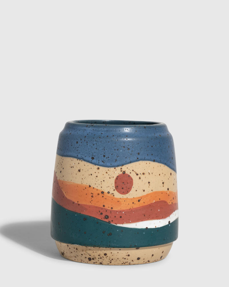Your coffee does so much for you, treat it to something nice. This roomy, 16 oz. mug is crafted from natural ceramic stoneware, hand-painted, and sure to brighten your mornings.