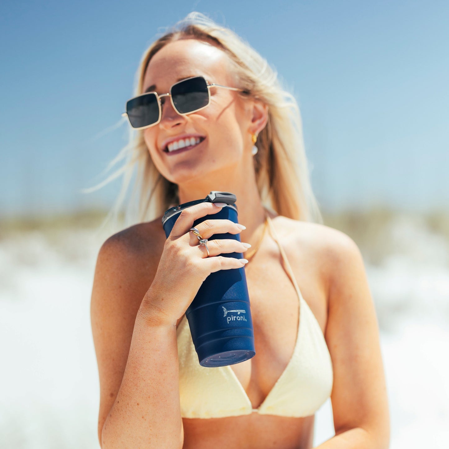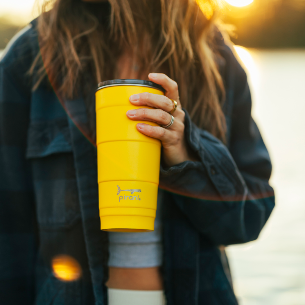 Party sustainably everywhere you go with this DELUXE, STACKABLE tumbler. Our Skinny-Wall Triple Insulation means you can go big without the bulk and keep three + cups of your chosen beverage hot or cold until the very last sip. Plus, with each use, you help eliminate the 500 billion single-use cups wasted around the world annually. Bring this easy-to-carry, stainless steel tumbler to your favorite game, coffee shop, concert, or wherever you choose to adventure. Our reusable tumblers make sustainability enjoyable and convenient!