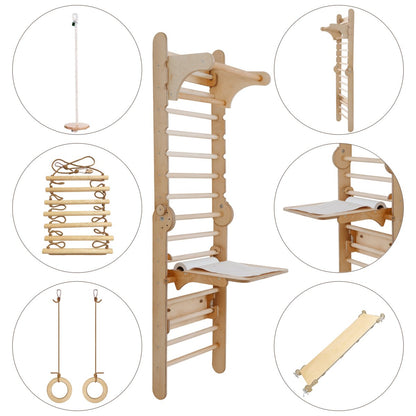 The Goodevas Ultimate 5in1 Adventure Set is a carefully curated assembly of Montessori-inspired play equipment. It's designed not just as toys, but as tools that stimulate both physical vigor and creative prowess. As your child's abilities evolve, so can the arrangement of this set, ensuring it stays relevant and challenging for years to come.