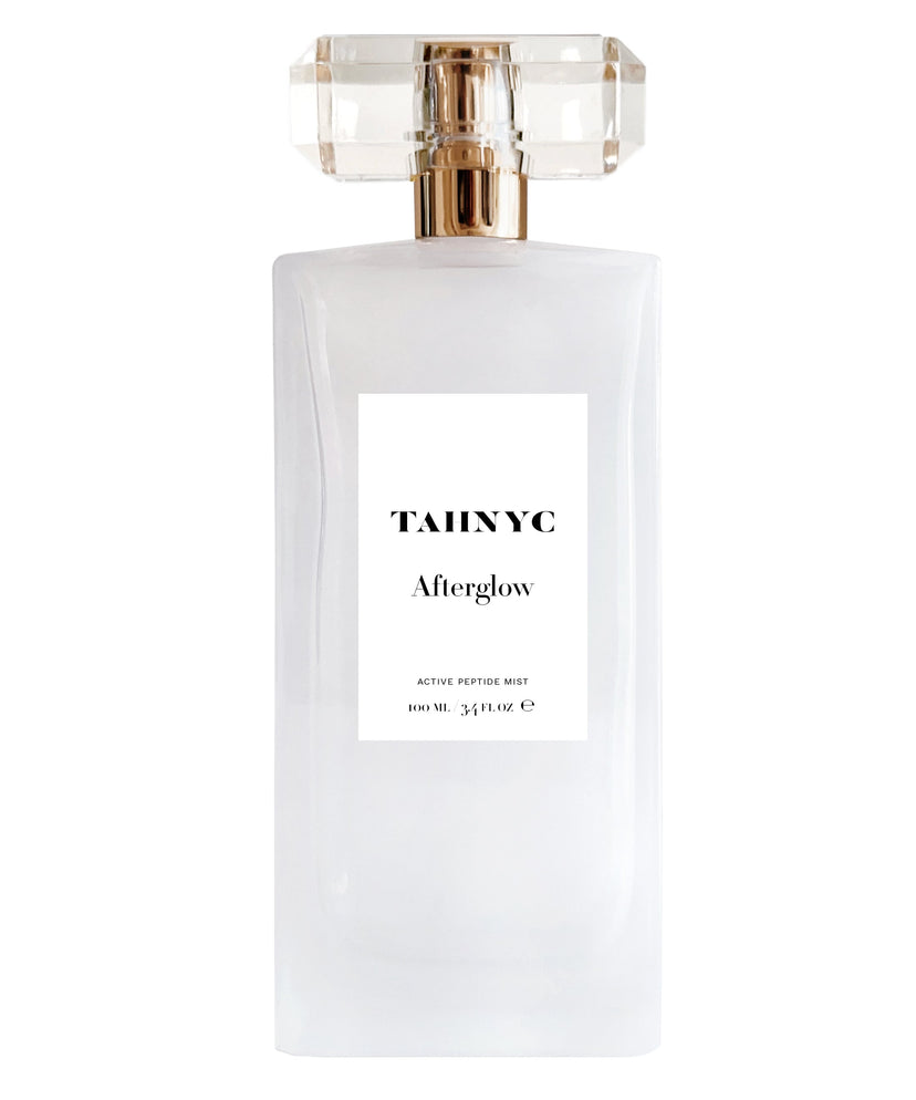 Afterglow is formulated with a concentrated blend of Peptides with focus on graceful aging. Peptides in this formula enhance skin plumpness and elasticity while minimizing fine lines, supporting a healthy glow and natural skin luminosity. So as you use the Mist you’re not just hydrating but replenishing and using meaningful actives to accomplish results and caring for skin.