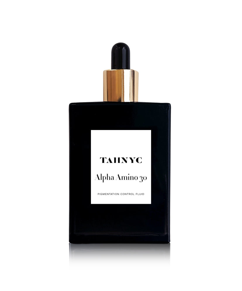 Alpha Amino 30 is a concentrated pigmentation control fluid formulated in a four pronged approach targeting persistent pigmentation with Alpha Arbutin, N-acetylglucosamine (NAG), 3-O-Ethyl Ascorbic Acid and a concentration of cellular Peptides that act as a tyrosinase inhibitor (enzyme that's needed to create melanin) preventing the transfer of melanin into the top layers of the skin. With this formula we take a 360° approach to address various types of hyperpigmentation including blemishes whilst supporting and strengthening the moisture barrier with pure Ceramides and a membrane of Hyaluronic Acid, Polyglutamic Acid and Tremella Mushroom Extract.