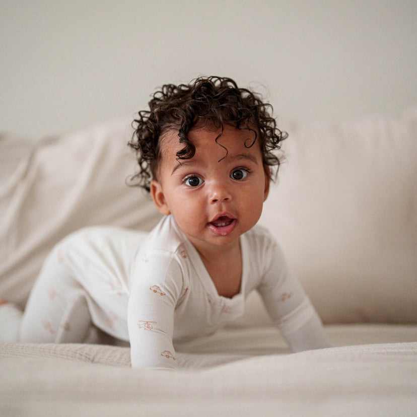 Available in two delightful colors, heathered tan smilies and pastel smilies, both adorned with a charming smiley print, this romper adds a touch of cuteness to your baby's wardrobe. The bamboo fabric's natural breathability regulates body temperature, keeping your baby cozy and cool during sleep. Say goodbye to restless nights and hello to peaceful slumber with our bamboo onesie romper. Treat your little one to the softest, most adorable sleepwear they deserve.