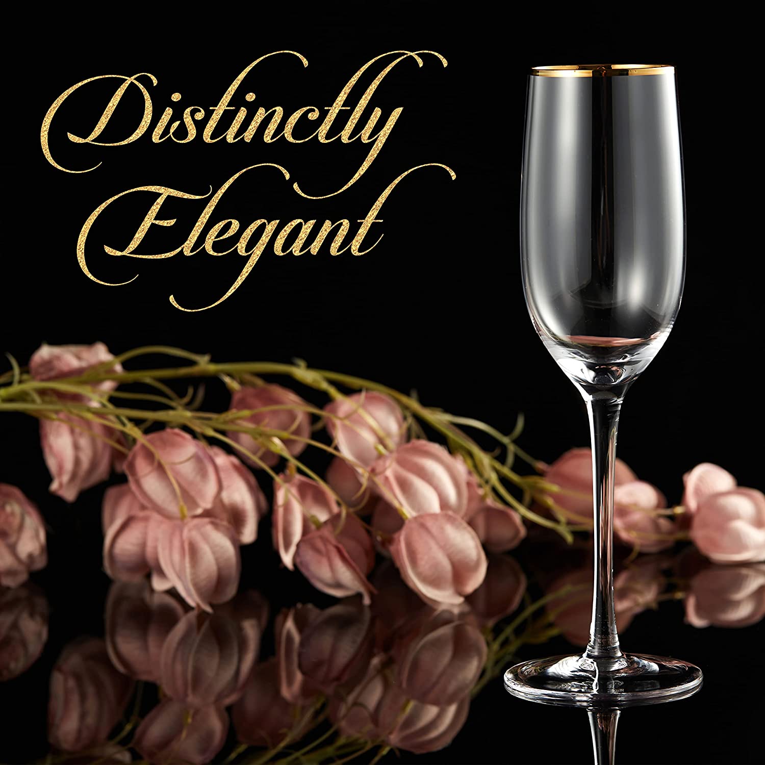 • CELEBRATE & TOAST: Make a statement at any occasion with the unique gold-rimmed champagne flutes