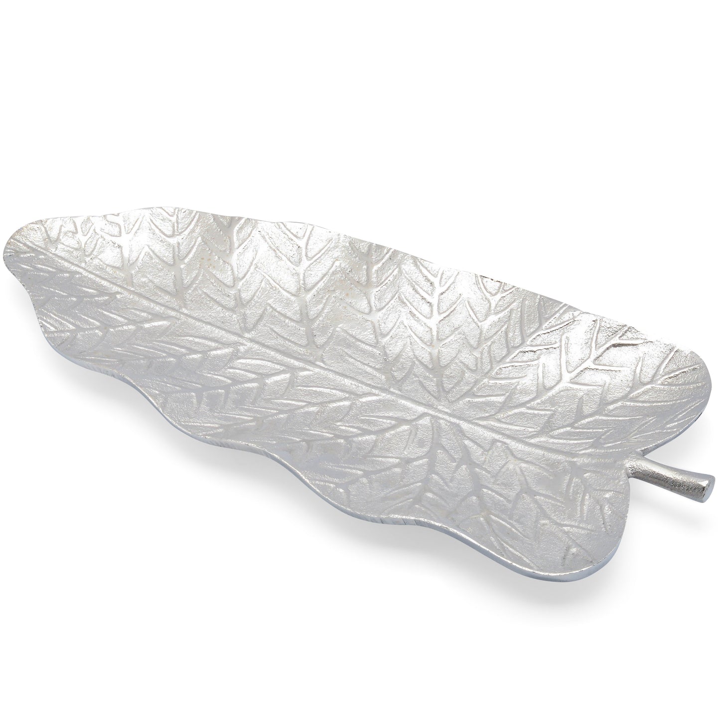 • TEXTURED METAL FINISH: Food grade, durable nickel-plated leaf-shaped plate features a nature inspired design to add interest to your space