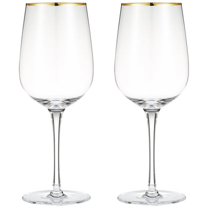 Berkware Luxurious and Elegant Long Stem Red Wine Glass with Gold tone Rim