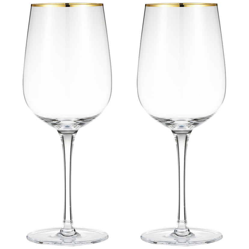 MODERN WINE GLASS SET: Toast your red, white, or any wine in large capacity long stem glasses STUNNING DECORATIVE ACCENT: Beautifully finished with sparkling gold rim surrounding the glass CELEBRATE & SAVOR: Make a statement at any occasion with the unique gold-rimmed wine glasses PERFECT GIFT: Thoughtful gift for weddings, house warming parties, birthdays, holidays QUALITY & STYLE: Lead-free crystal glass, 12.7oz capacity, 8.1in tall, 3in diameter
