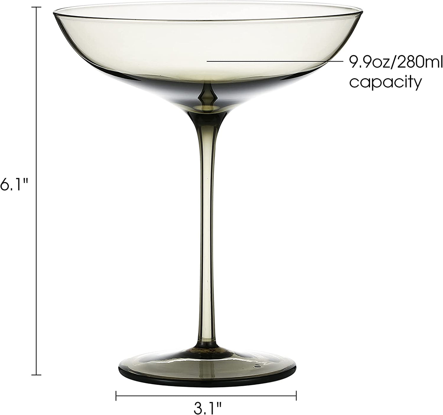 Berkware Luxurious and Elegant Smoke Colored Glassware - Coupe Cocktail Glass - Set of 4