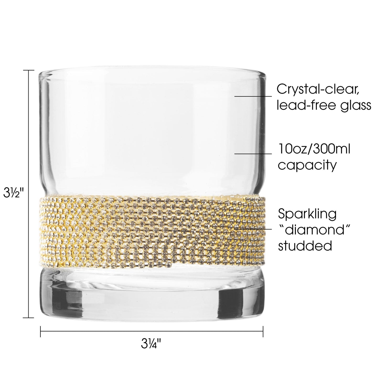 Embellished with sparkling, diamond-like rhinestones around the base, these lowball glasses bring style and class to your parties, celebrations and special occasions. Entertain your guests and make them feel like royalty!