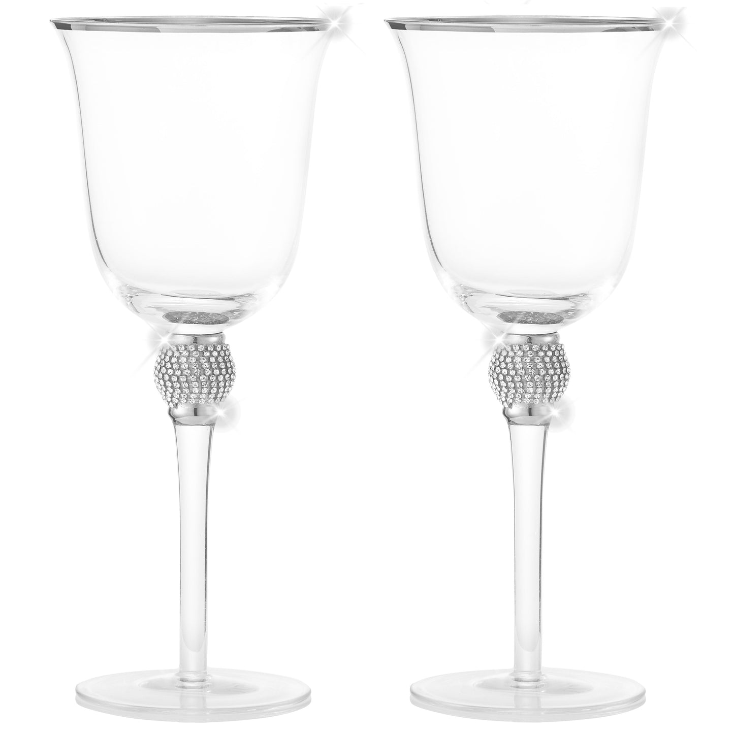 Berkware Set of 2 Rhodium Silver tone Wine Glasses - Luxurious Ros+¬ and White Wine Glass with Dazzling Rhinestone Design and Silver tone Rim