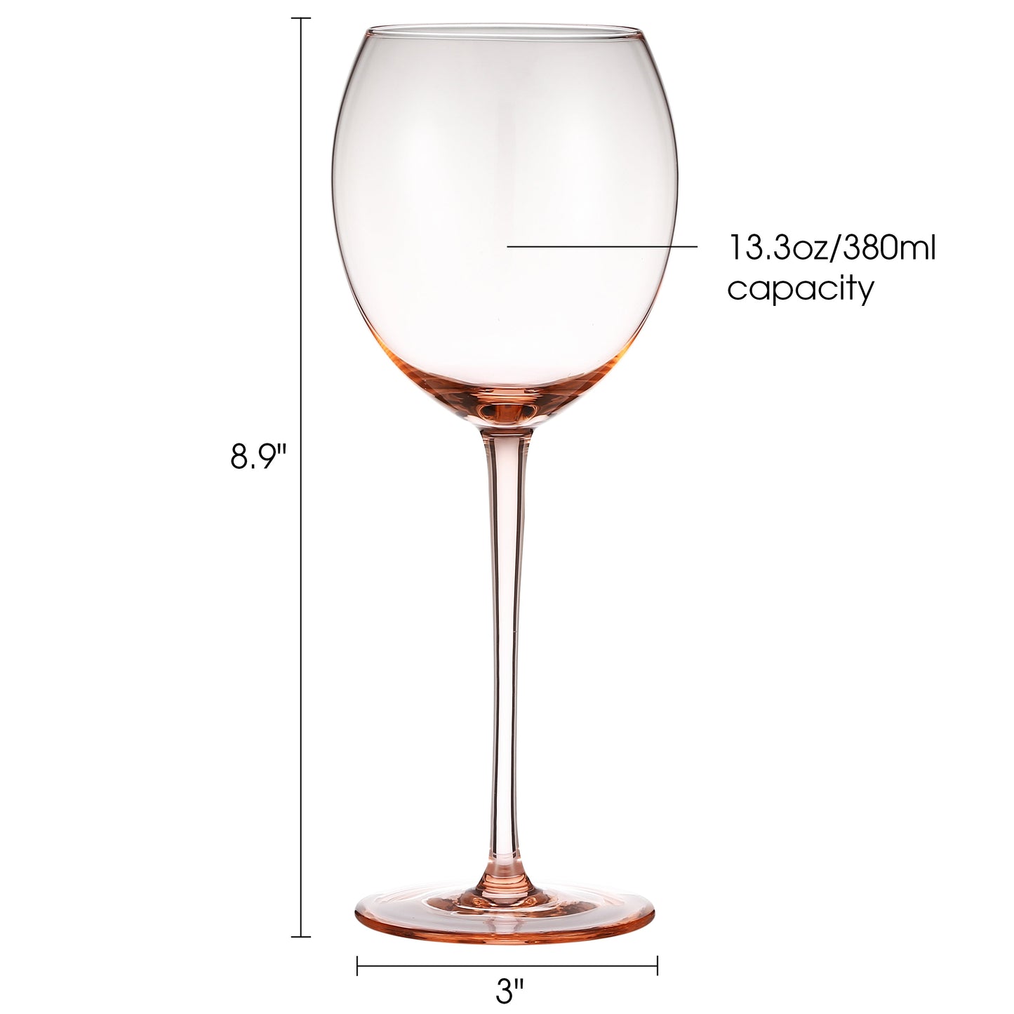 MODERN WINE GLASS SET: Toast your red, or any wine in large capacity long stem glasses STRIKING COLOR: Beautiful colored glass adds a dramatic effect CELEBRATE & SAVOR: Make a statement at any occasion with the blue color tinted wine glasses PERFECT GIFT: Thoughtful gift for weddings, house warming parties, birthdays, holidays & more QUALITY & STYLE: Soda lime glass, 13.3oz capacity, 8.9in tall, 3.3in diameter