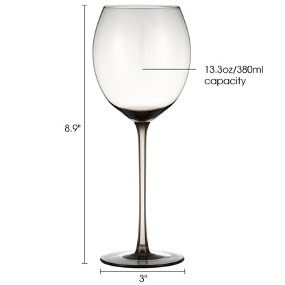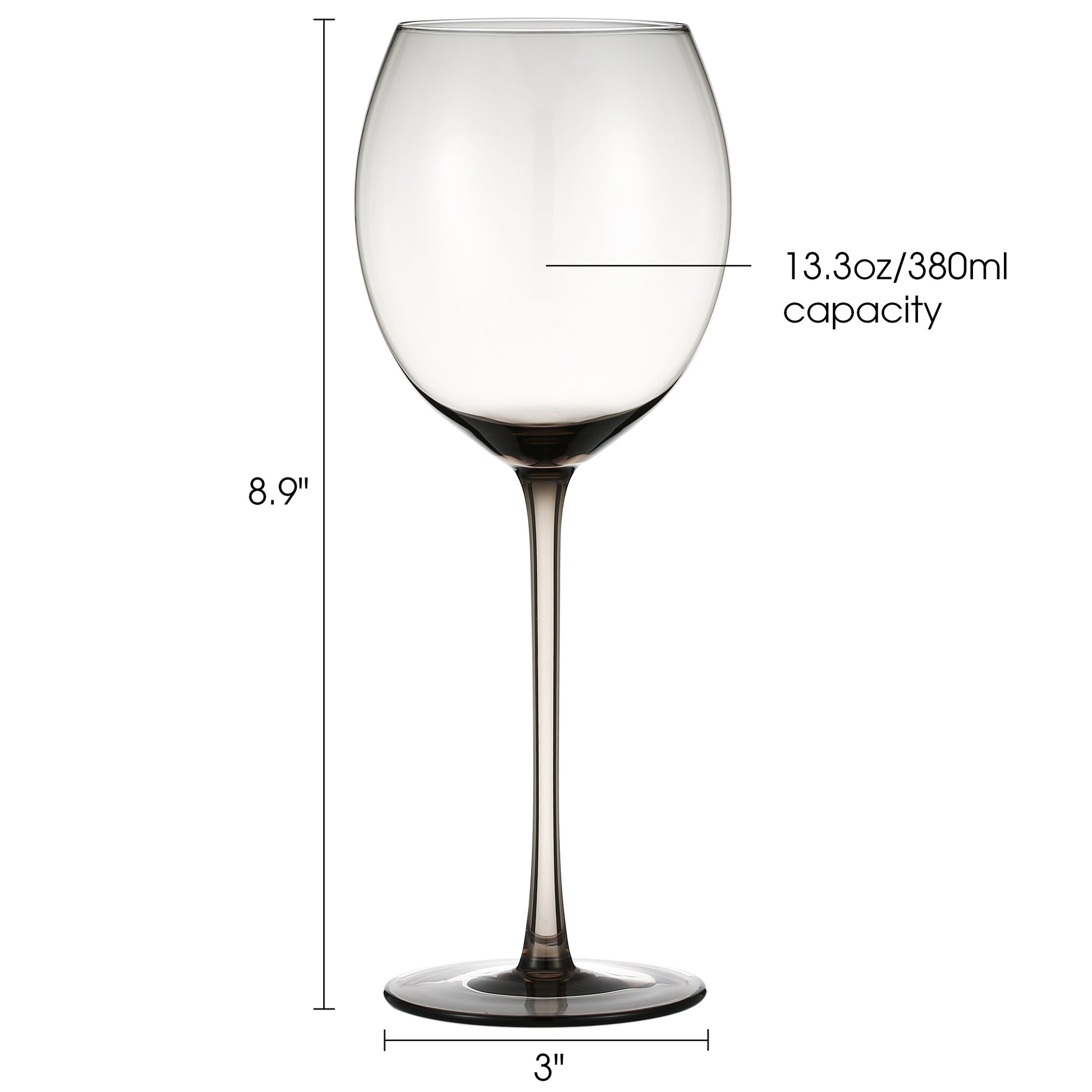 MODERN WINE GLASS SET: Toast your red, or any wine in large capacity long stem glasses STRIKING COLOR: Beautiful colored glass adds a dramatic effect CELEBRATE & SAVOR: Make a statement at any occasion with the blue color tinted wine glasses PERFECT GIFT: Thoughtful gift for weddings, house warming parties, birthdays, holidays & more QUALITY & STYLE: Soda lime glass, 13.3oz capacity, 8.9in tall, 3.3in diameter