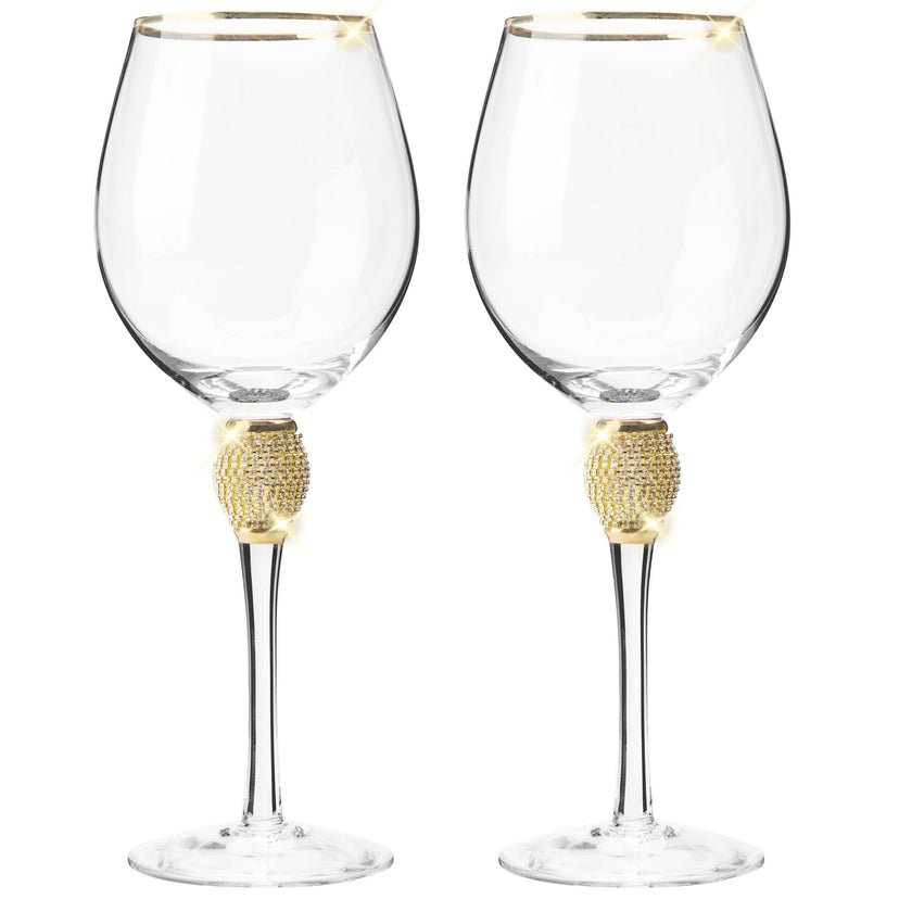 Make any occasion even more special with our Luxurious Gold or Silver & Rhinestone Wine Glasses! This set of lead free glasses features unique stylish finishes: sparkling rhinestones design above the stem, and a lustrous 14 karat gold trim around the rim of the glass. This stemware set will surely surprise your guests and delight even the most sophisticated wine enthusiast.