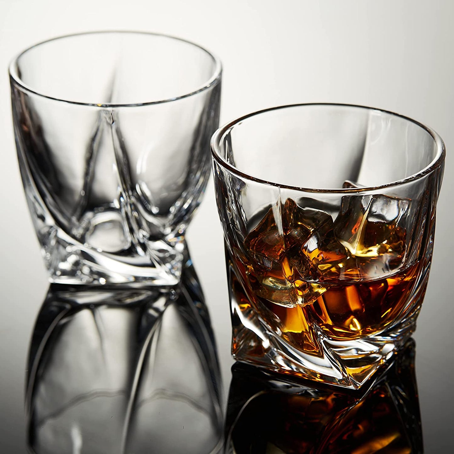 Berkware Set of 4 Lowball Whiskey Glasses - Modern Twisted Base Design