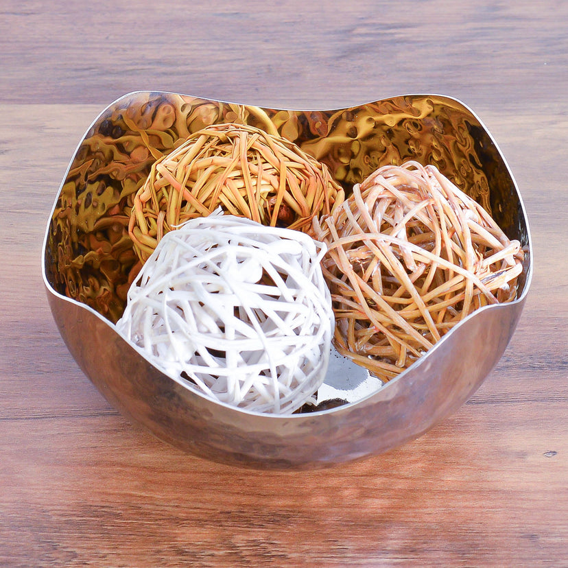 This stunning metal bowl is designed to be both beautiful and functional. The curvy wavy rim accents the hammered stainless steel bowl, and the polished metal look is striking with its shiny finish.