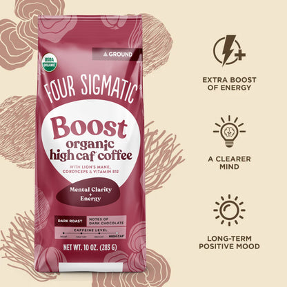 Bring focus to your cup with this delicious organic Arabica whole bean coffee infused with cordyceps mushroom, lion's mane mushroom and coffee bean extract for an extra boost of mental clarity and energy.