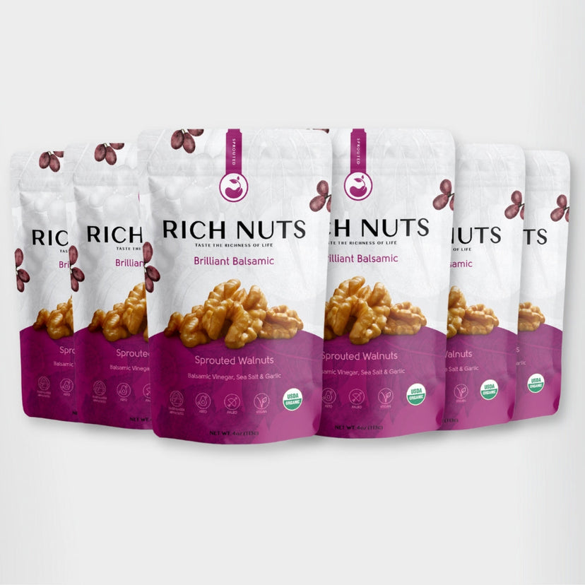 The classic Italian flavors of balsamic vinegar plus a hint of garlic meet the light, satisfying crunch of sprouted walnuts.