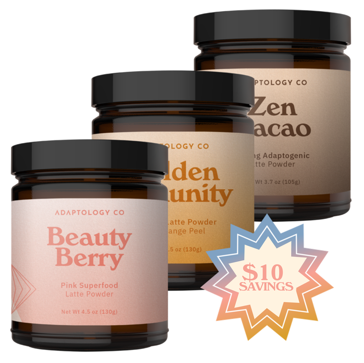 Caffeine loves me, caffeine loves me not. While we're huge coffee lovers, we know sometimes you just aren't feeling or needing the caffeine. Enjoy our delicious caffeine-free bundle and try Berry Beauty, Golden Immunity, and Zen Cacao!