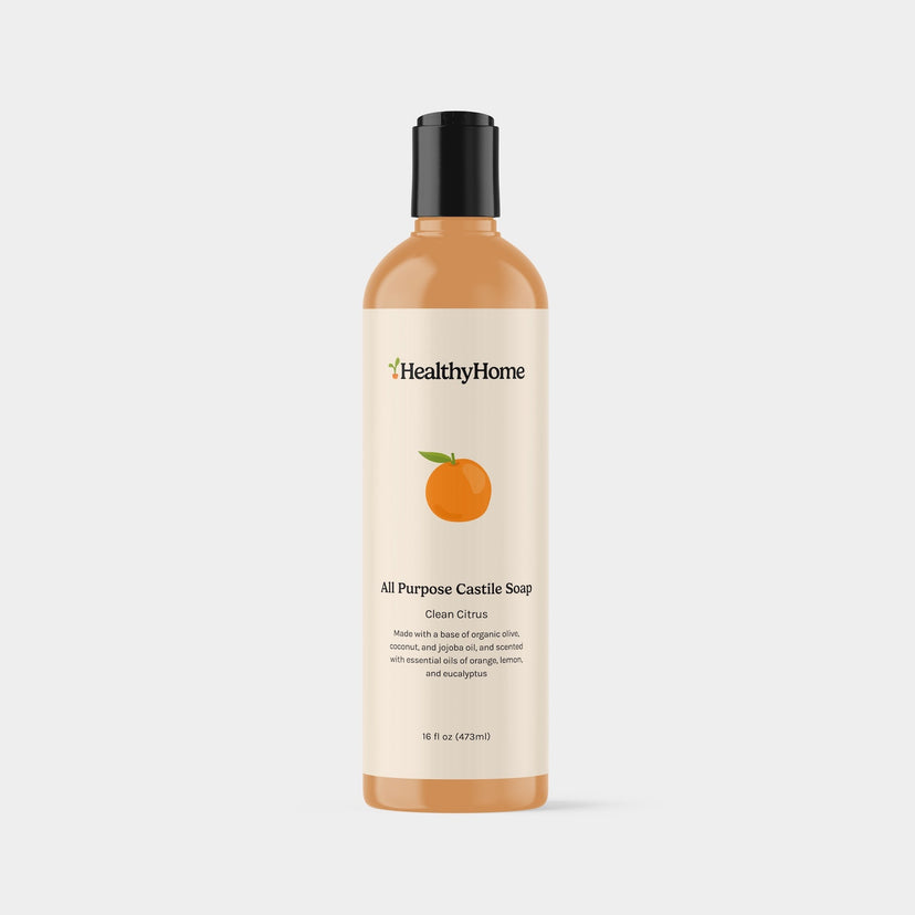 All purpose, natural Castile soap made with organic oils of coconut, olive, and jojoba, with a fresh citrus scent from essential oils of orange, lemon, and eucalyptus.