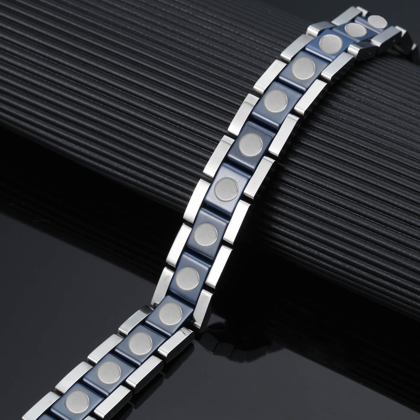 Ceramic and Stainless Steel Unisex Magnetic Power Bracelet. Blue Color. Model CEB017L