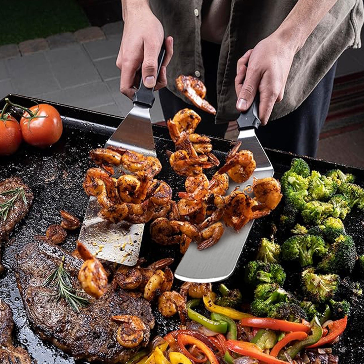 ERGONOMIC, EASY-GRIP HANDLES: Tools feature comfortable handles for secure grip and control during long cooking sessions. Designed for effortless flipping, scraping, and cleaning