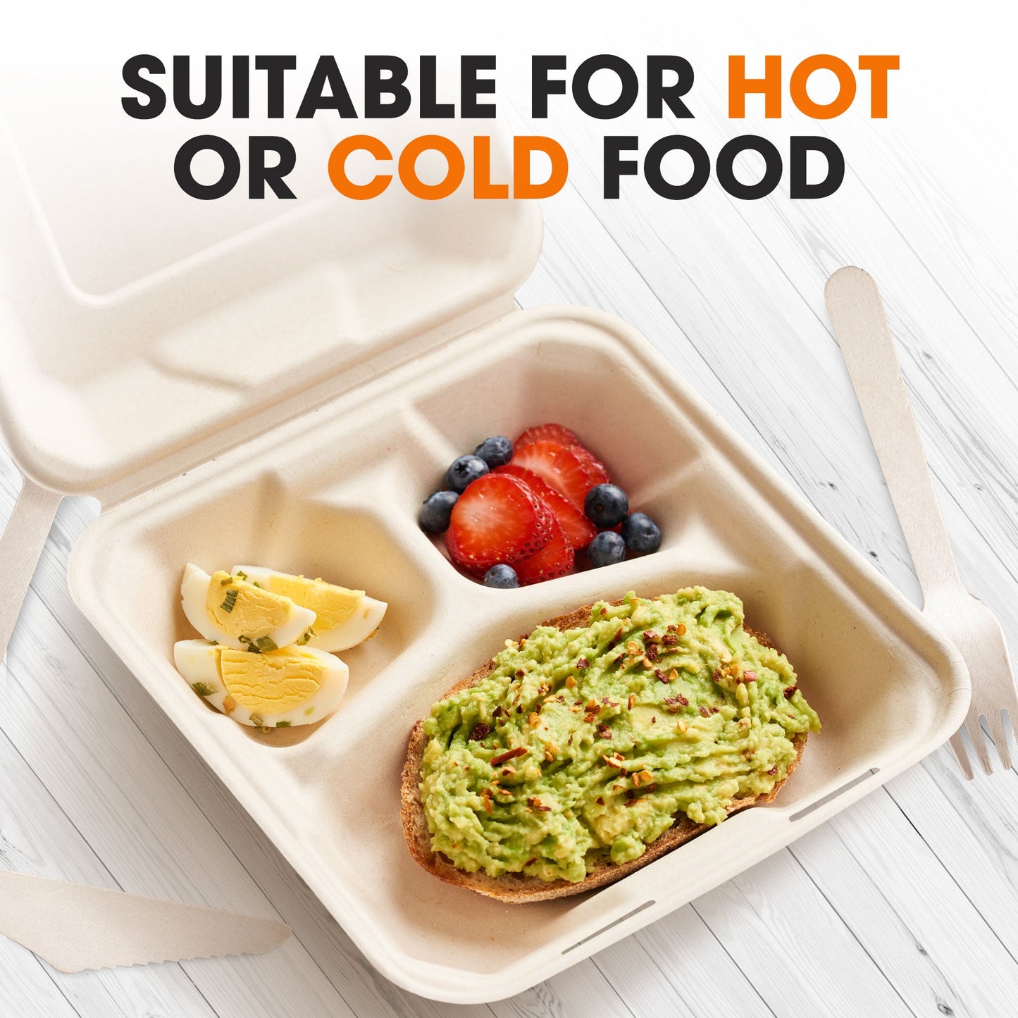 PROTECT THE PLANET: These 8"x8" biodegradable food containers degrade quickly, ensuring convenient cleanup and reducing environmental impact without the need for sending to landfills