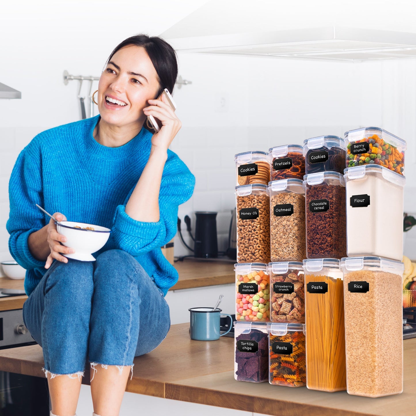 Multi-Purpose Storage: Our stackable storage containers for pantry are leak-proof and suitable for storing both dry and wet foods including spaghetti, pasta, cooking and baking supplies, cereal, flour, sugar, oats, rice, coffee, tea, snacks, nuts, and much more