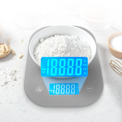 HIGH PRECISION SENSORS: Equipped with high-accuracy sensors, this scale measures up to 11lbs/5kg with 1g/0.01oz precision, ensuring consistent and accurate readings every time. Ideal for precise cooking, baking, and portion control