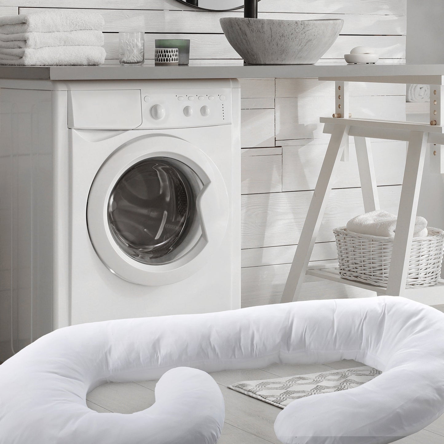 This high quality Cheer Collection down alternative J-shape pillow will indulge you with incredible warmth, loft, comfort and coziness. This extraordinary pillow surrounds you in a cocoon of support, relieving pressure to many areas of the body, which drastically reduces your need to toss and turn. This Body Pregnancy Pillow is a full-body solution for expectant mothers and will support your back preventing sciatica and lower back pain. It also tucks between your knees for help with back pain and temperature control, while cradling your belly. The Pillow comes with a Zippered Cover.