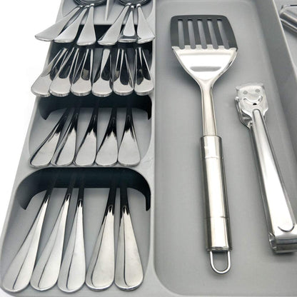 Keep your kitchen drawers organized and maximize your drawer space with these Cheer Collection utensil organizers. Storing your cutlery at an angle allows you to store a full set of cutlery in less than half the space of a conventional tray.