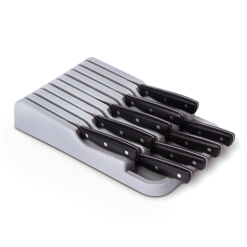 • 2 tier knife organizer holds up to 9 knives to organize messy drawers