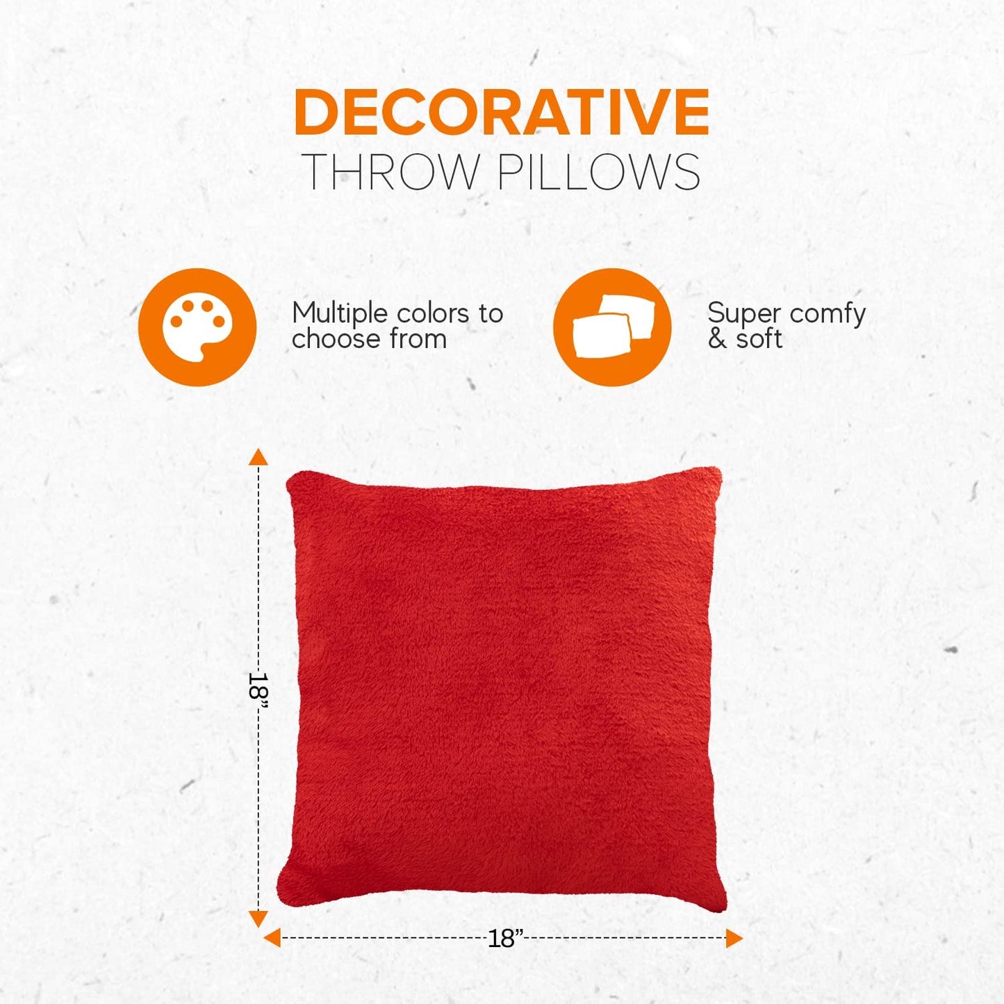 Cheer Collection Microsherpa Throw Pillow - Ultra Soft and Fluffy, Elegant Home Decor, Velvet Stylish Accent Pillows - 18" x 18" - Set of 2