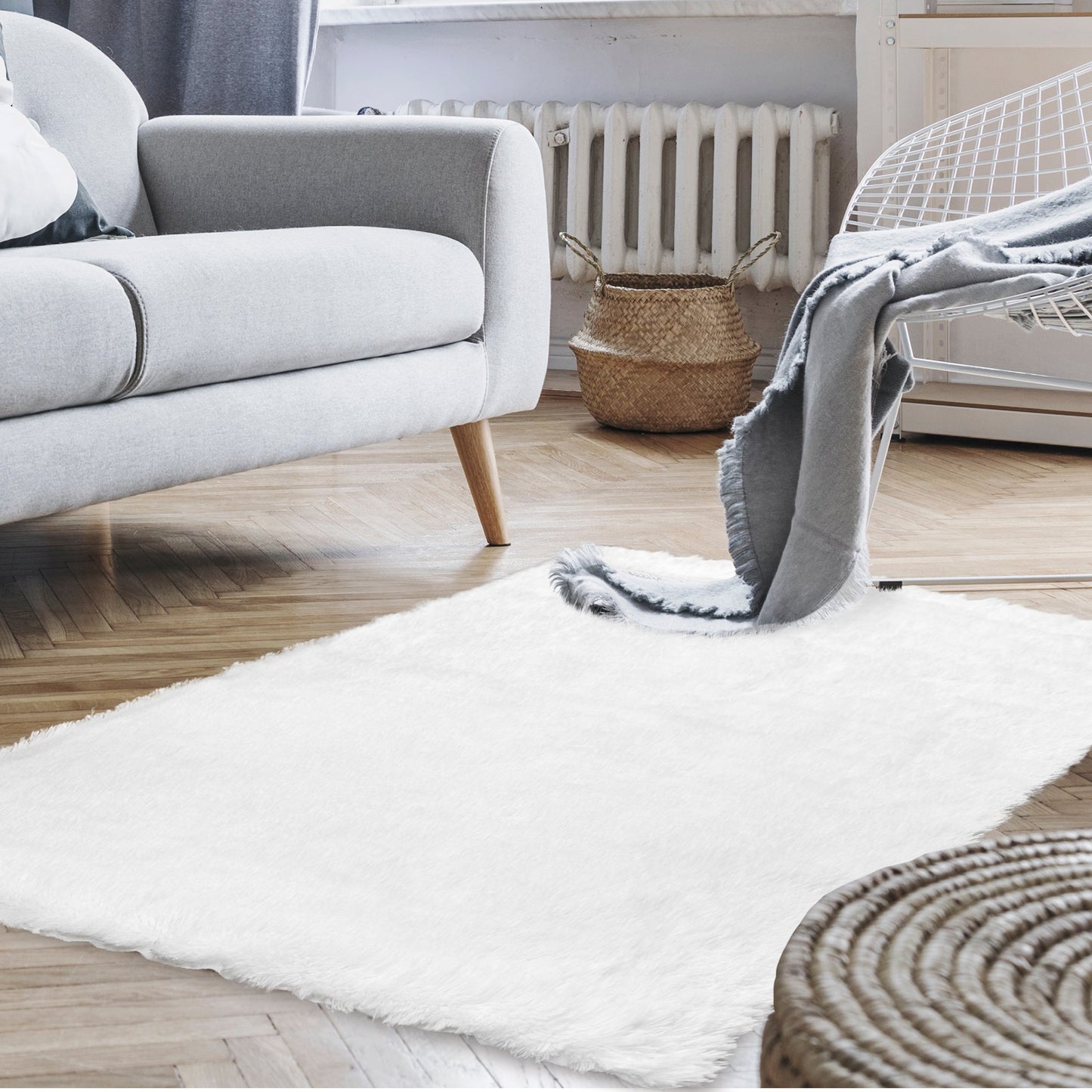 Cheer Collection Plush Shaggy Hair Area Rug - Anti Slip Bottom - Fuzzy Rug 24" x 34" - White