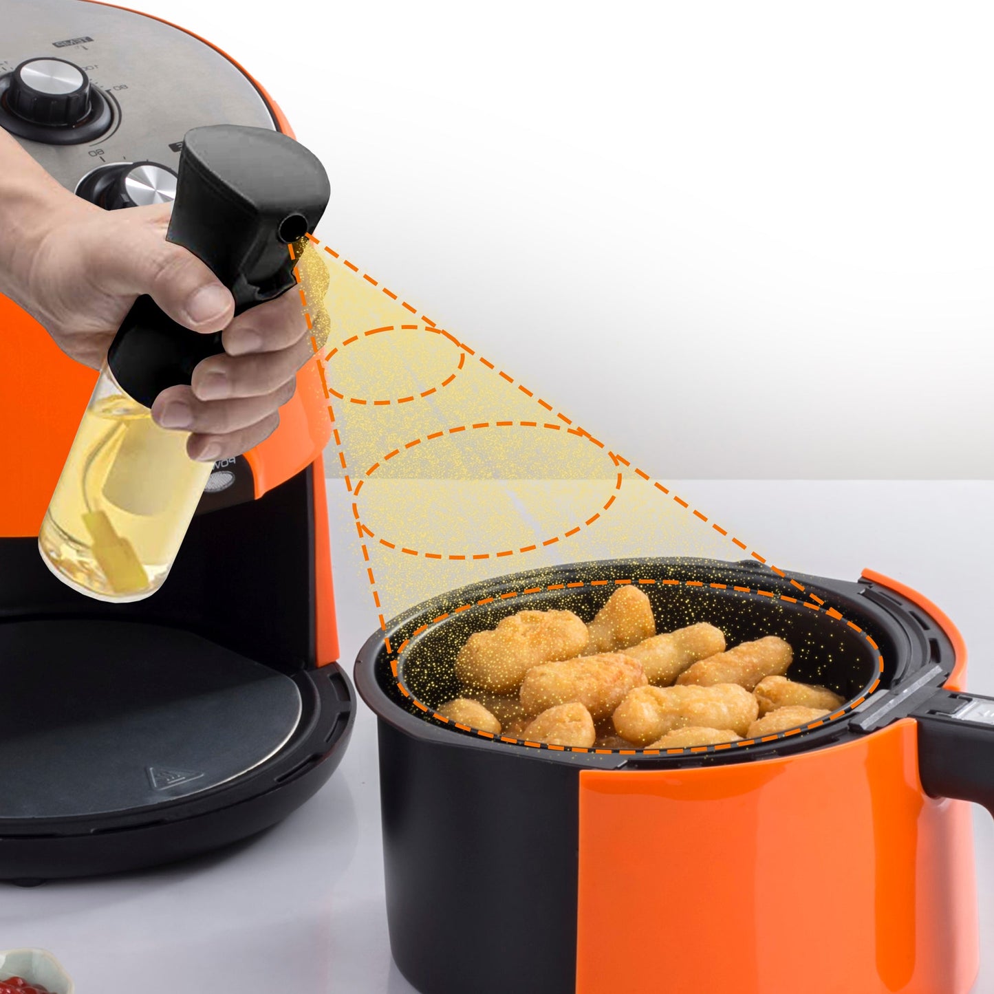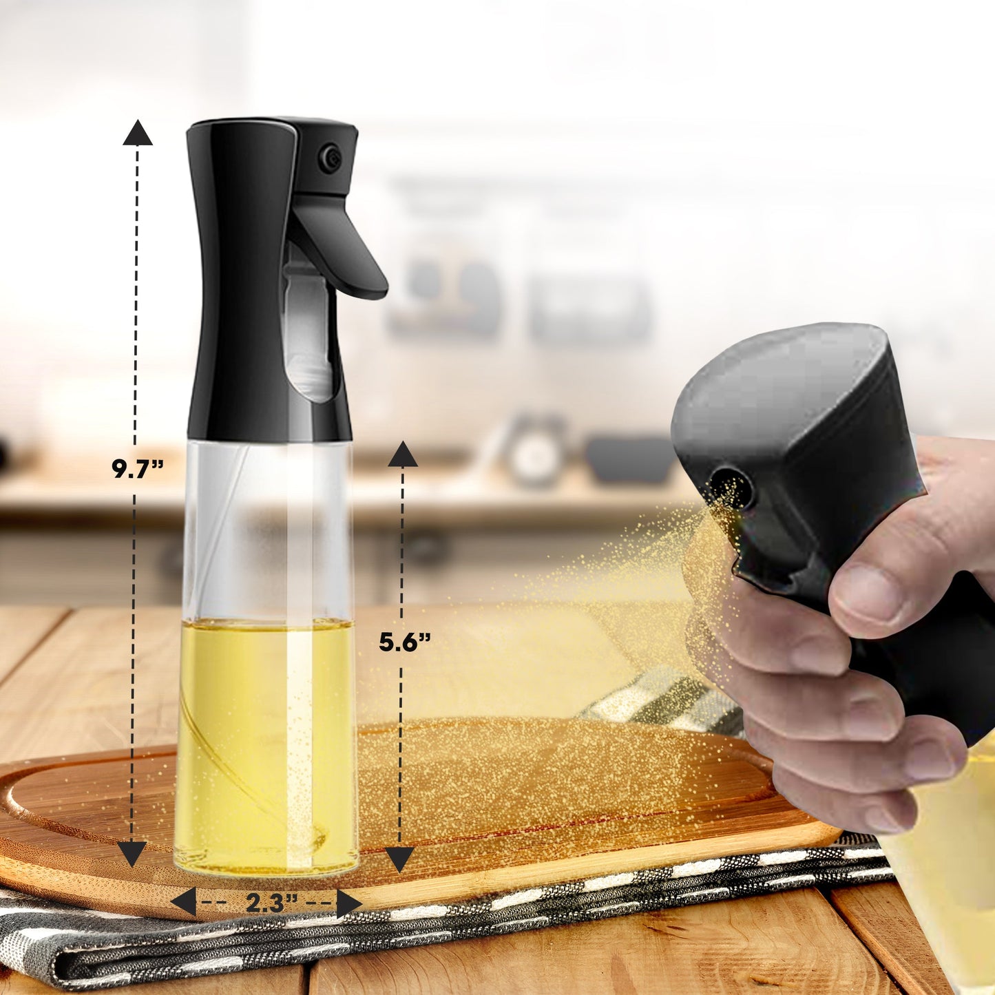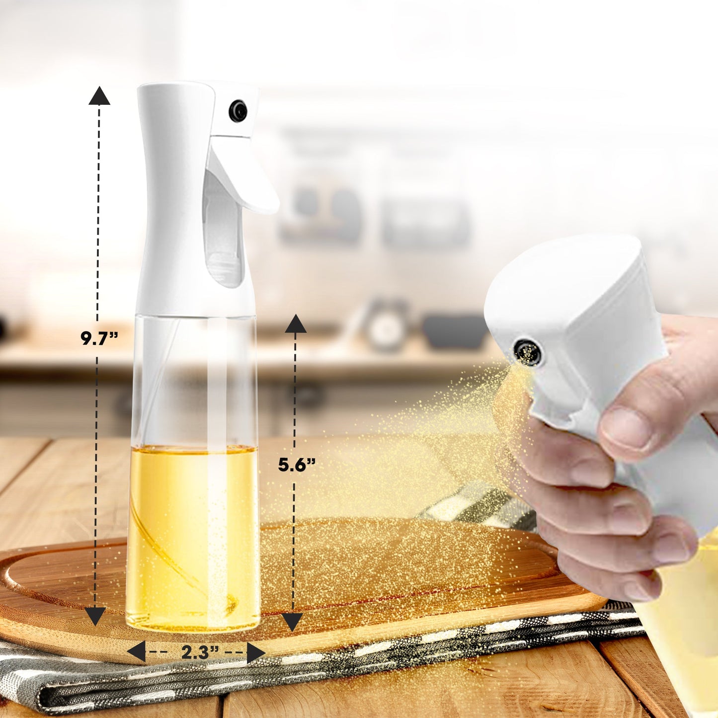 OPTIMIZED FOR CONVENIENCE: Choose from two sizes (200ML: 7.7” x 2.1”, 300ML: 9.7” x 2.3”) to fit your kitchen and lifestyle needs. The easy trigger pull and wide-angle mist provide even coverage with minimal effort, reducing finger fatigue and enhancing the cooking experience