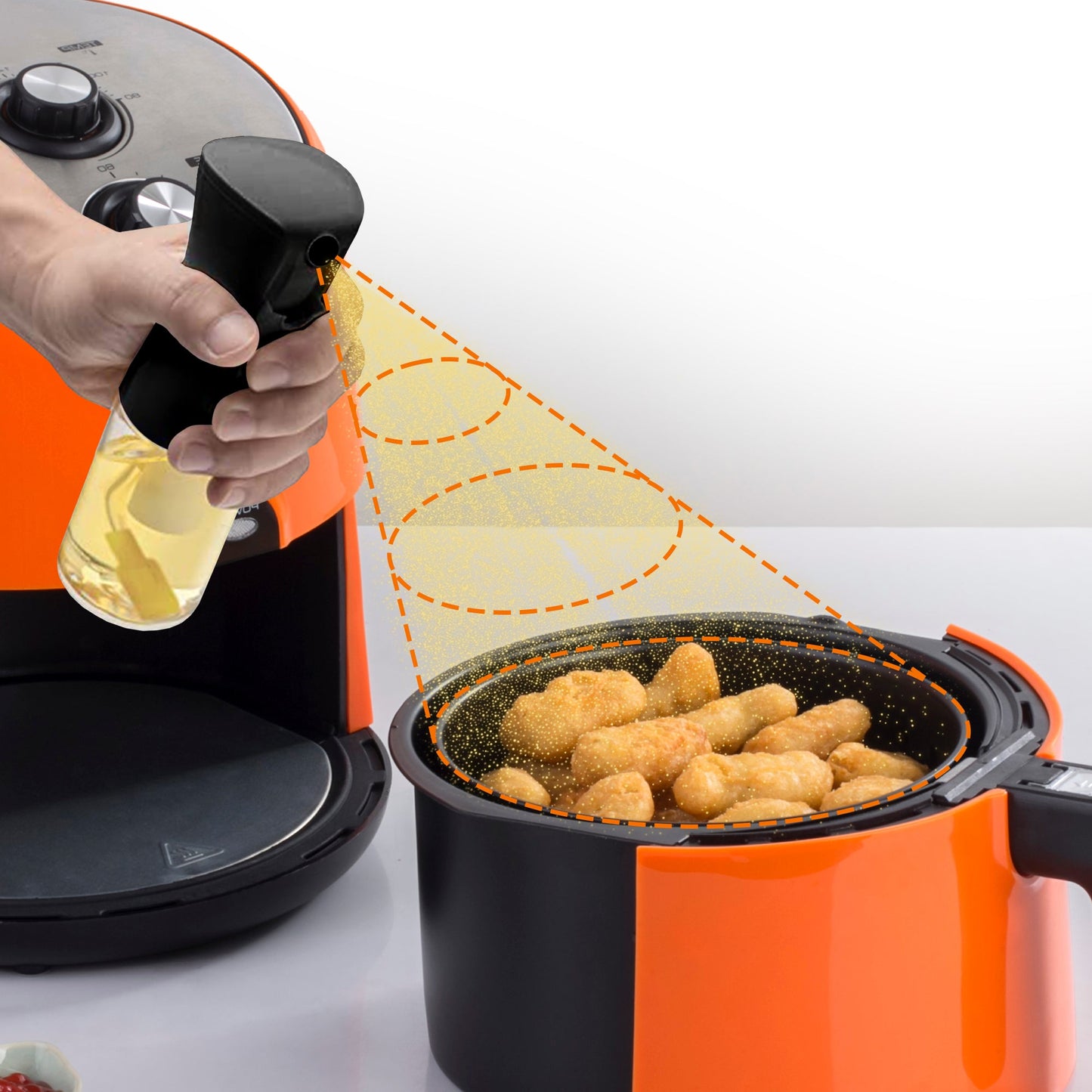 NO-SPILL, LEAK-PROOF DESIGN: Equipped with a secure leak-proof seal, this oil spray bottle guarantees a mess-free kitchen. Its precise engineering ensures no oil wastage, keeping your counters clean and your ingredients perfectly seasoned