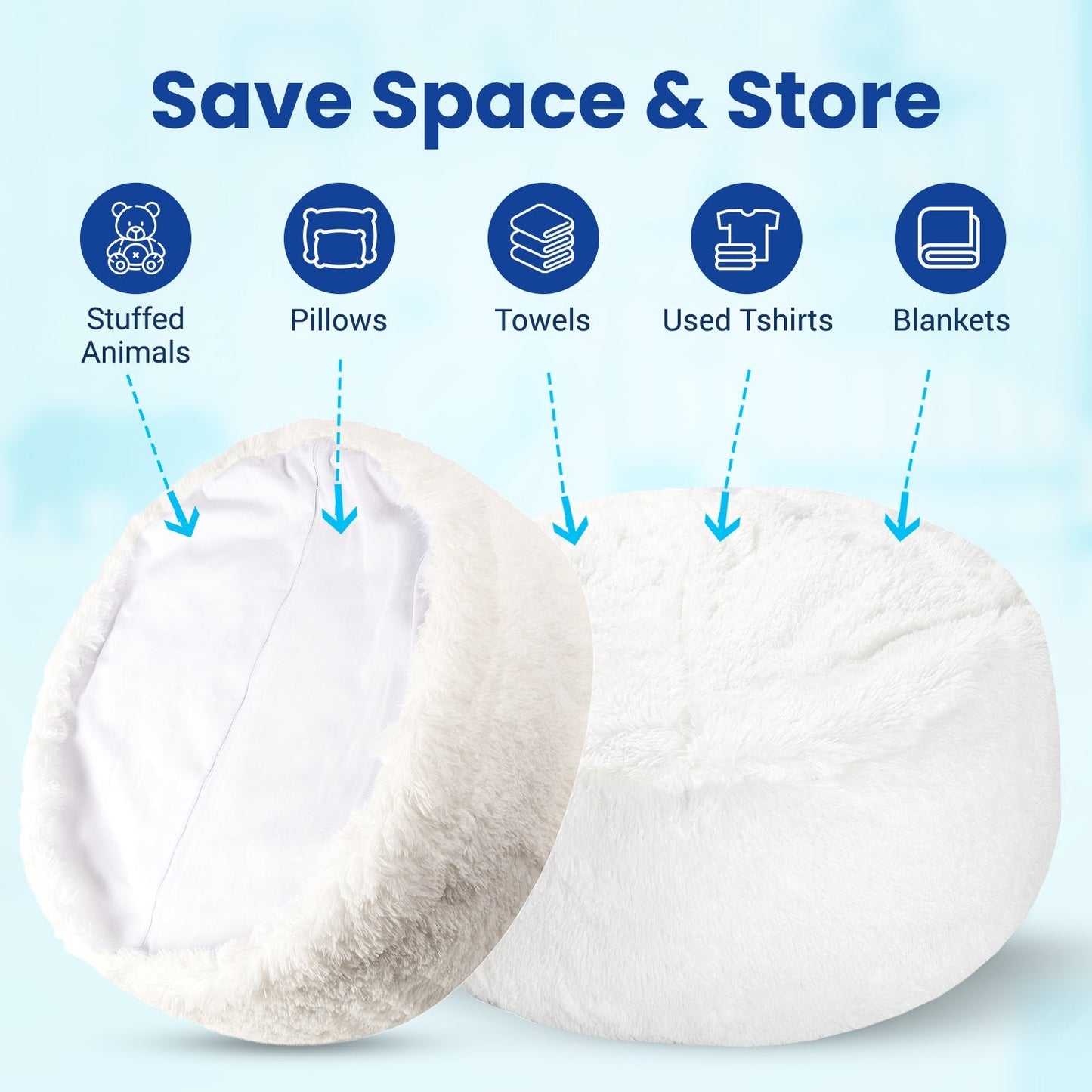 • Brighten Up Your Decor: The stuffed animal organizer beanbag chair uses vibrant and eye catching colors which coupled with the fluffy fur create a unique and charming combination that will add a playful and comforting touch to the look of any child’s room decor