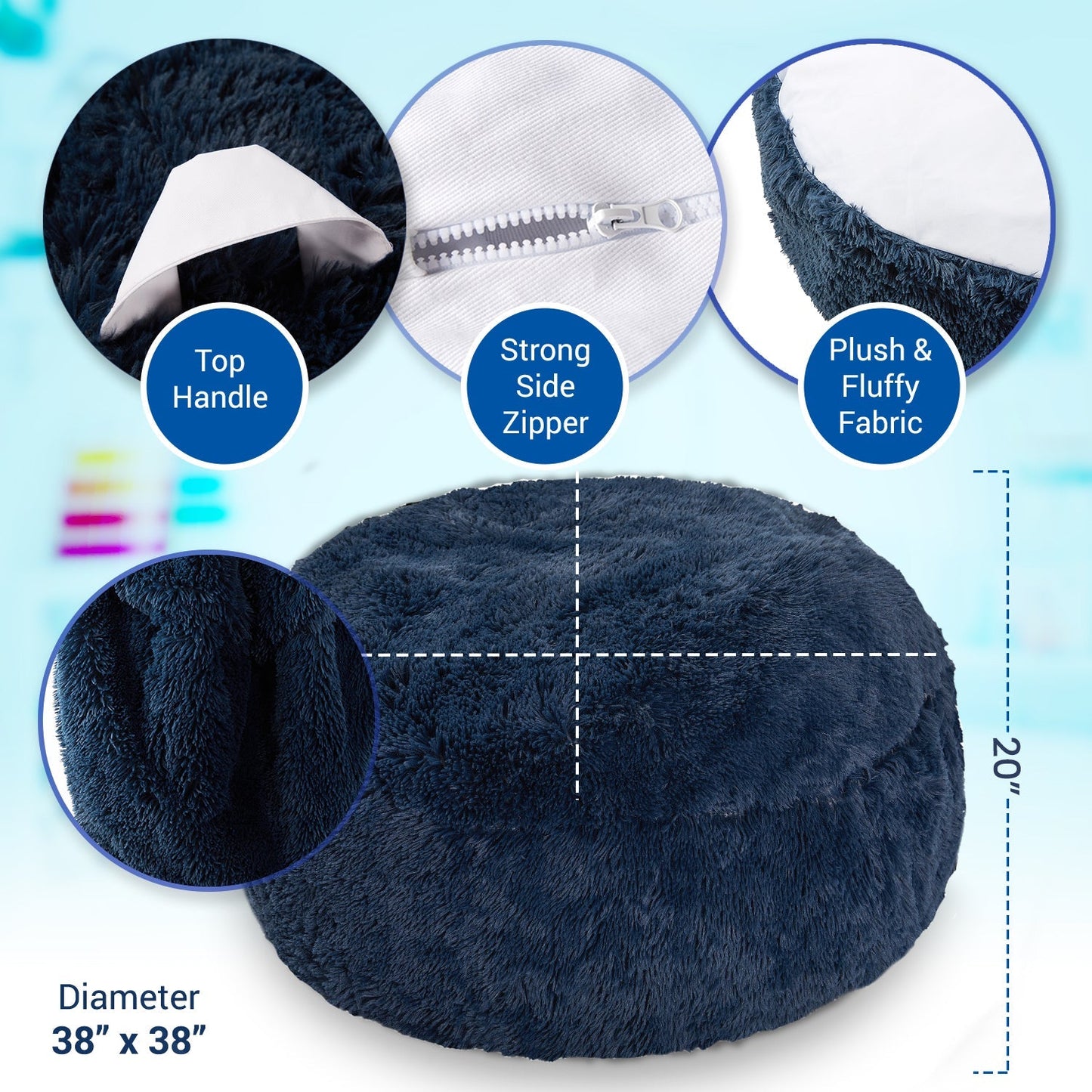 • Durable And Oh So Comfy: The kids toy organizer bean bag chair cover is made using shaggy long hair fabric with durable yet soft canvas for the base and handle of the bag along with using sturdy zippers to offer just the right balance of quality and durability so your little one can use it every day