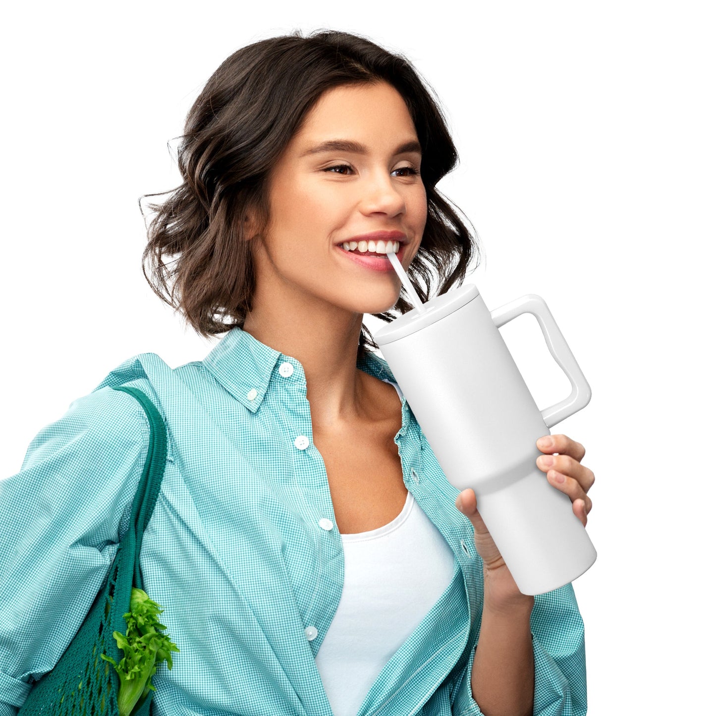 DURABLE & ECO-FRIENDLY: Crafted with Bisphenol A-free materials and a sturdy plastic straw, this tumbler is both eco-conscious and built to last. Perfect for outdoor adventures or daily commute. Reuse and reduce with a tumbler designed for a lifetime of use