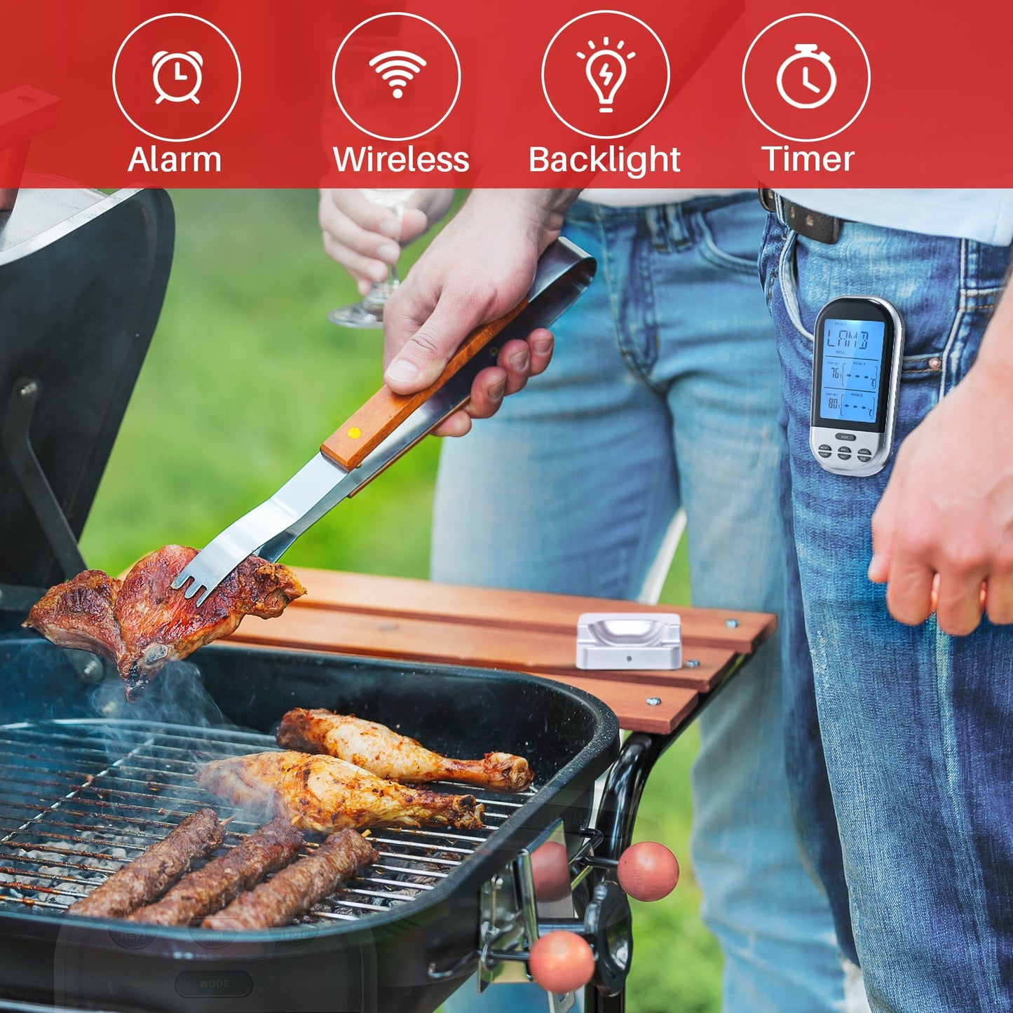 • Accurate And Precise Reads: The wireless thermometer for grilling and cooking uses a transmitter/receiver along with accurate sensors to help you precisely monitor meat temperatures up to 100 feet away so you can focus on the rest of your dishes with peace of mind