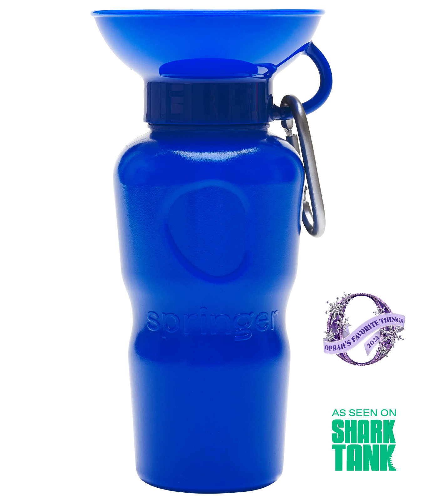 The perfect solution for keeping your dog hydrated on-the-go. Designed for your dog to drink fresh water from the attached bowl without wasting a drop. Simply squeeze the bottle with one hand to fill the bowl and release to drain the excess water back in. The leak-tight innovative bottle includes a carabiner for easy clipping to your backpack, bag, or leash — ideal for hikes, beach visits, road trips, and walks around the neighborhood. Featured in Oprah's Favorite Things 2023 + as seen on Shark Tank!