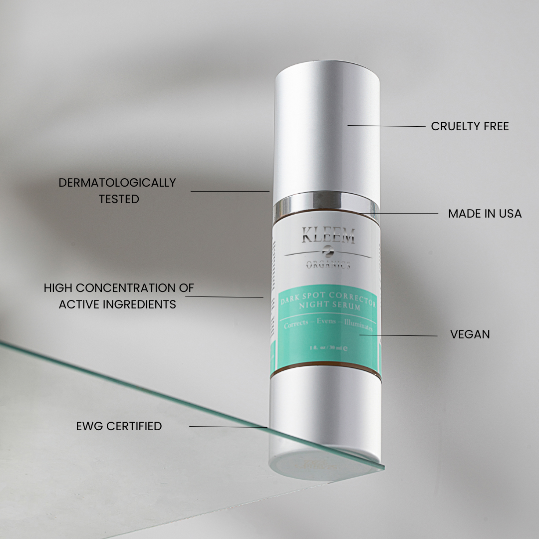 Kleem Organics’ Dark Spot Treatment is a night serum that fades dark spots and hyperpigmentation, reducing the look of dullness and uneven skin tone for a radiant complexion. Natural, pure, organic ingredients restore a healthy glow to your skin by inhibiting the production of melanin to lighten discoloration in all its forms. The quick-absorbing texture does not have a sticky feel, and leaves skin beautifully bright and healthy-looking.