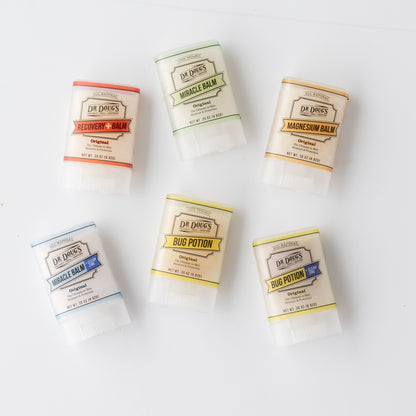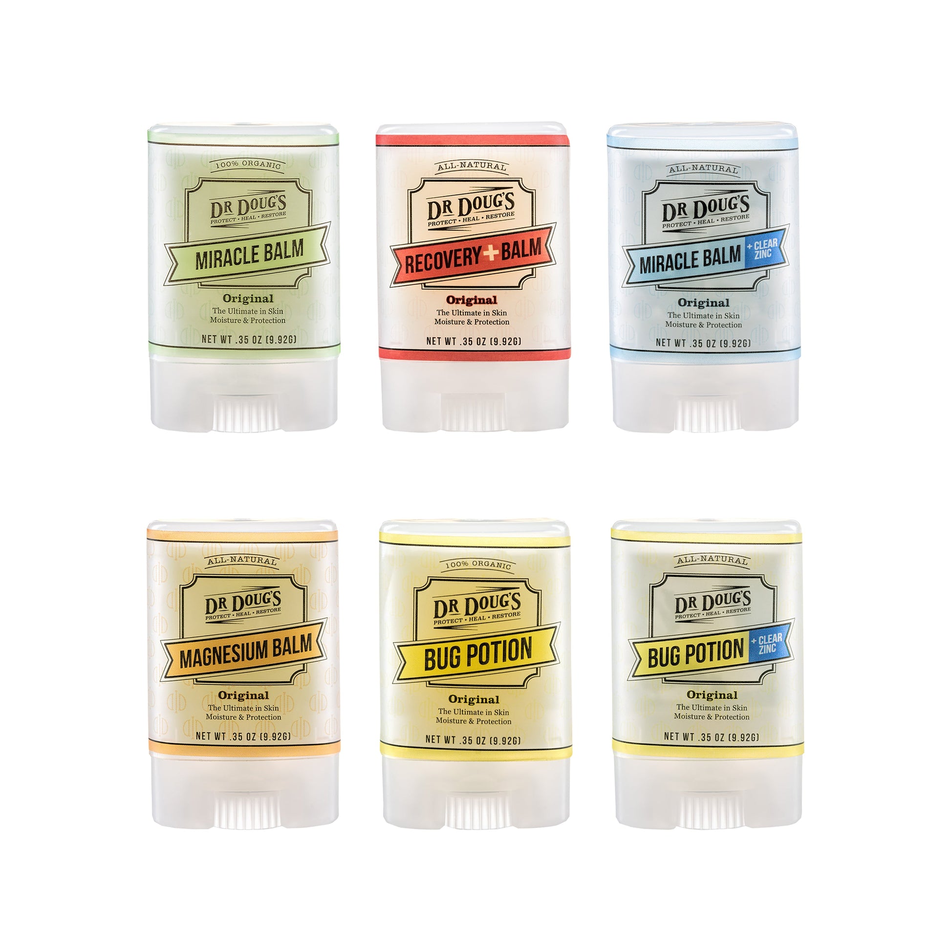 If there’s one gift you can buy for everyone on your list, it’s Dr. Doug’s Sampler/Gift Pack. It contains all six of our top-selling Miracle Balms in convenient twist-up pocket-sized versions. Whether you’re not sure which of our balms is best for you or you want to introduce someone to the wonders of healing natural products, this kit has you covered.