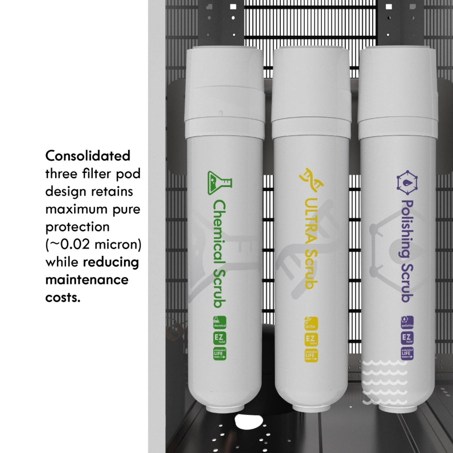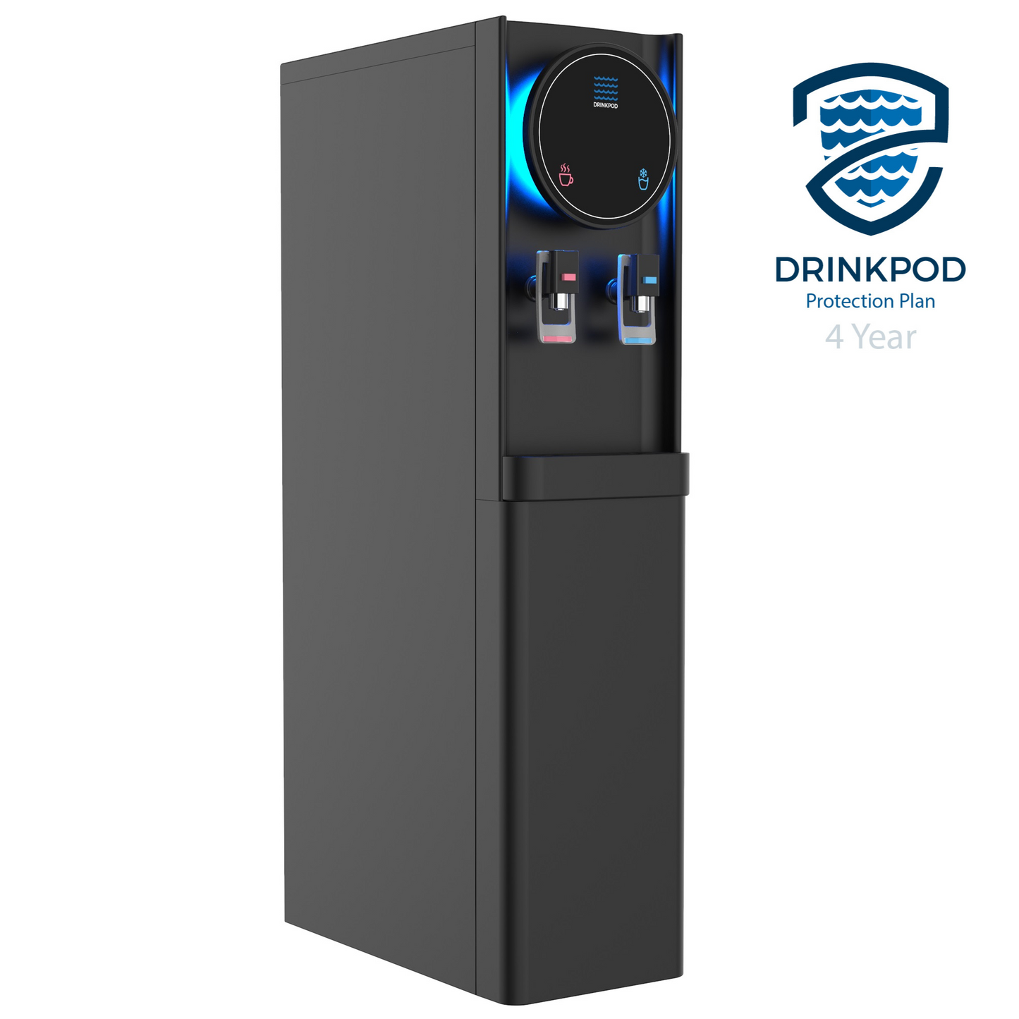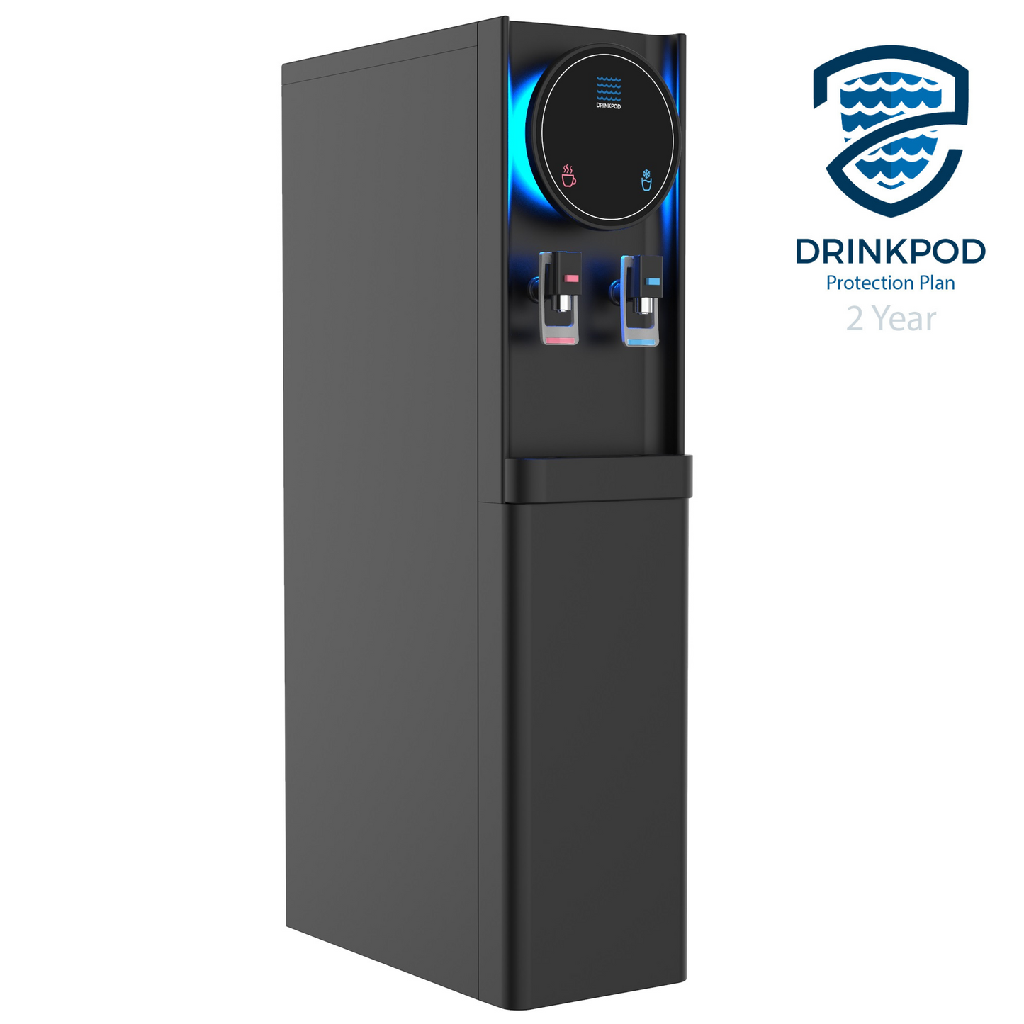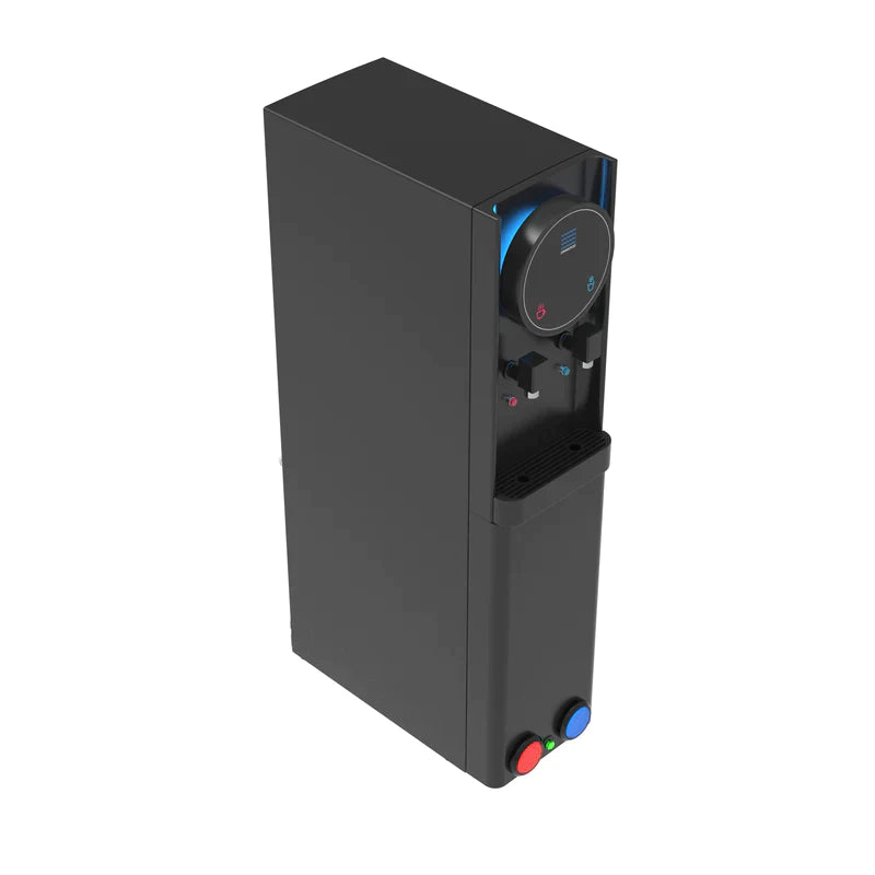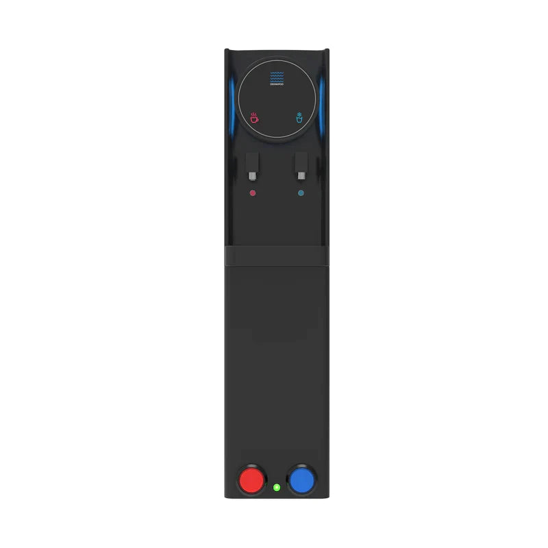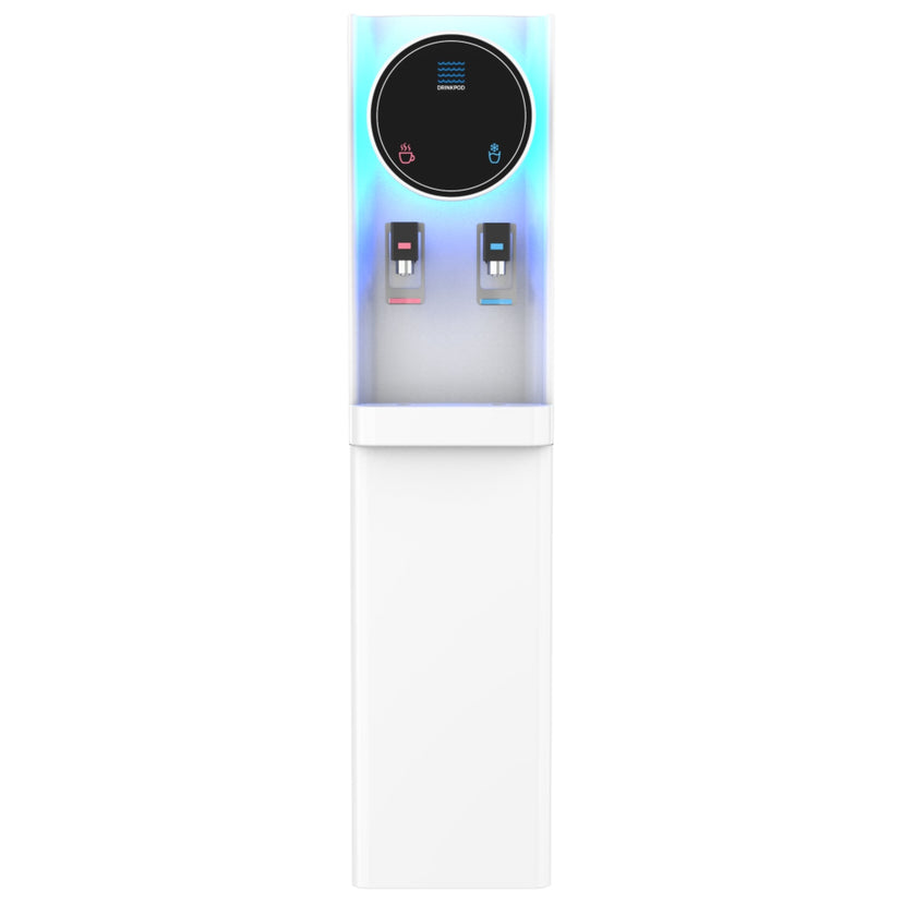 The Drinkpod Pro Series 6 Bottleless Water Cooler Dispenser is slim and attractive and features a unique blue led accent light, that will add a beautiful touch to any home or office setting. With two independent temperature modes, this water cooler is outfitted to meet and exceed all your drinking needs. From a piping hot cup of Chai tea, or a crisp refreshing glass of chilled delicious water, every drop of ultra-pure water filtered through the Ultra Fine filtration pod will leave you wanting more. The Drinkpod 6 Series connects to an existing water line to supply pure filtered water though its ULTRA +3 filtration technology contained inside a magnetic door in the water cooler dispenser A complete installation kit is included with a detailed easy to read manual and illustrations to get you set up in less than 30 minutes. The Drinkpod 6 is also equipped with Ice/Café Connect and can provide purified filtered water for up to 2 additional appliances like your ice-maker and coffeemaker