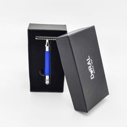 Dural Heavy Stroud Head Double Edge Safety Razor Duty Blue/Silver + Pouch