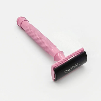Dural Heavy Stroud Head Double Edge Safety Razor Duty Pink/Black + Pouch