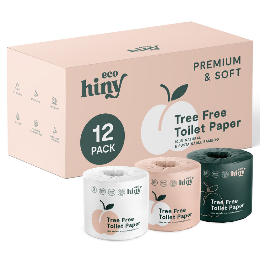 ecoHiny 100% bamboo toilet paper doesn't sacrifice softness for sustainability or strength. This 3-ply eco-friendly toilet paper is free of elemental chlorine (ECF), BPA, ink, and dye, so you don't have to worry about your toilet paper introducing harmful chemicals to your family's sensitive areas.