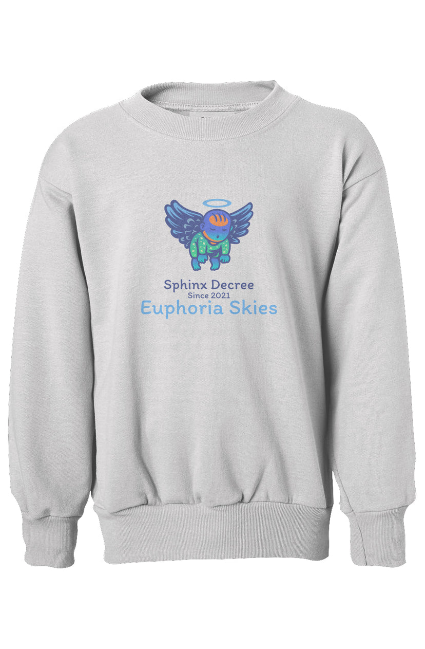 The EcoSmart® Youth Crewneck From Euphoria Skies ☁️😇 Covers One In Peace. Be Smart ... We At Sphinx Decree Are Just Doing Our Part By Exibiting Fine Art 🎨 We Plant Seeds That Succeed While Helping Shape A More Organic Planet 🌎