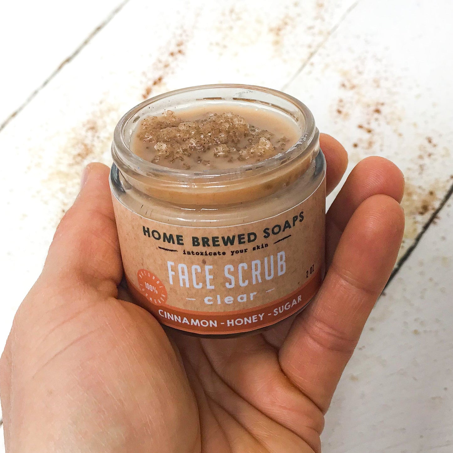 FACE SCRUB INGREDIENTS: Organic Raw Honey, Fair Trade Organic Raw Sugar, Organic Cinnamon Powder, Jojoba Oil, Coconut Oil. 2 oz.Face