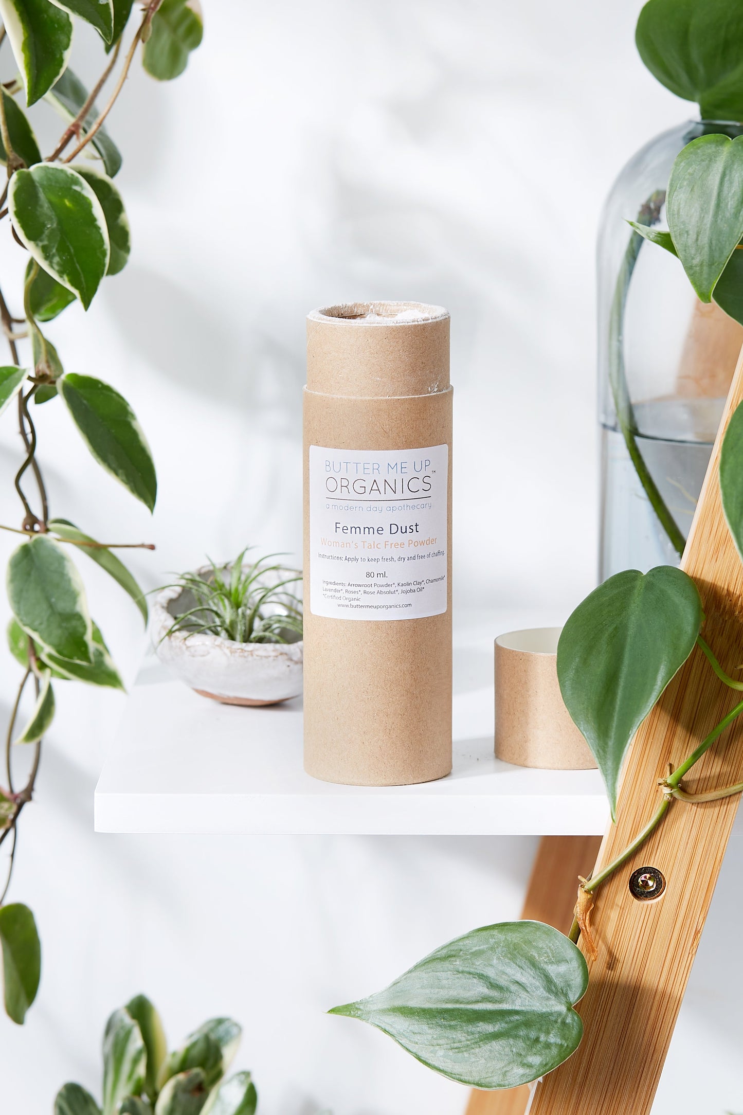 This certified organic blend is talc-free and safe for use in the most gentle areas. Use to stay fresh and avoid chaffing.