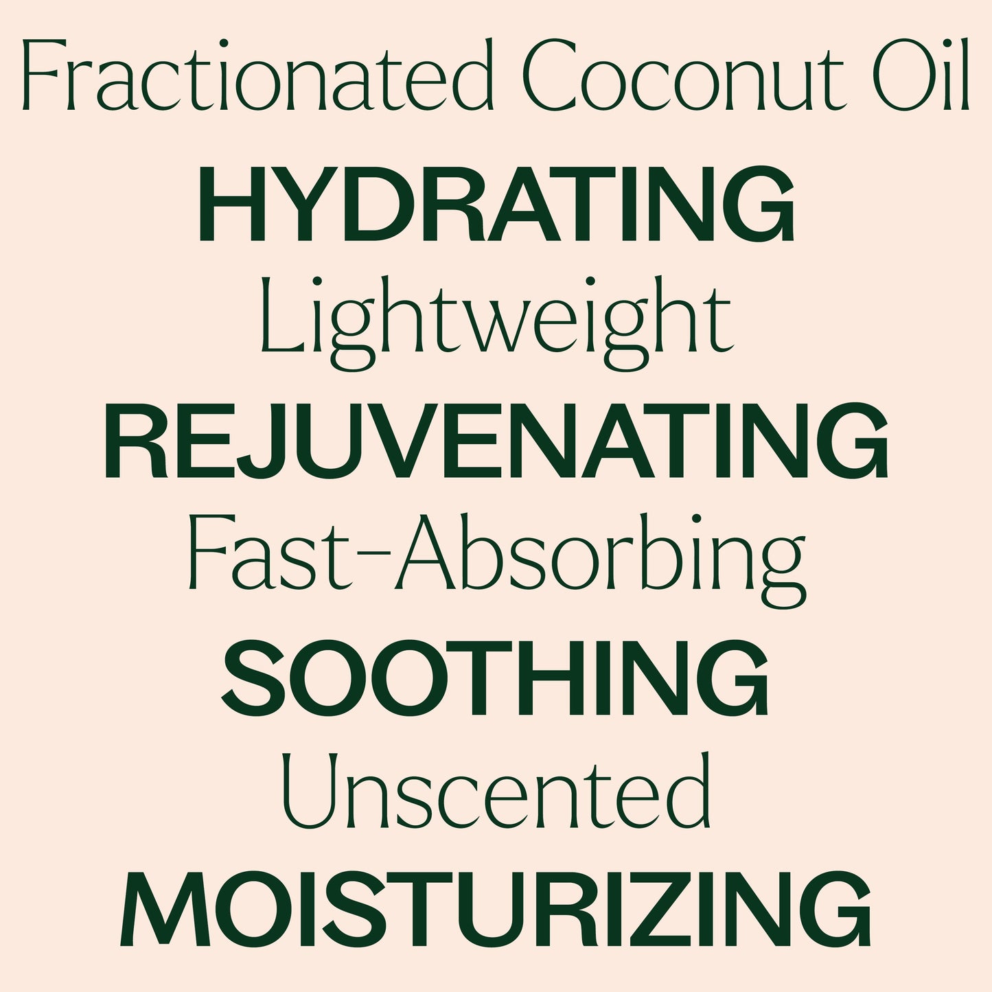 Fractionated Coconut Oil MCT (Medium-Chain Triglyceride) is a literal âfractionâ of Virgin Coconut Oil and is produced by a heating process that isolates medium-chain triglycerides from other fatty acids. This allows Fractionated Coconut Oil to retain the same incredible moisturizing ability as Virgin Coconut Oil. However, unlike Virgin Coconut Oil, Fractionated Coconut Oil remains a liquid until introduced to below freezing temperatures.