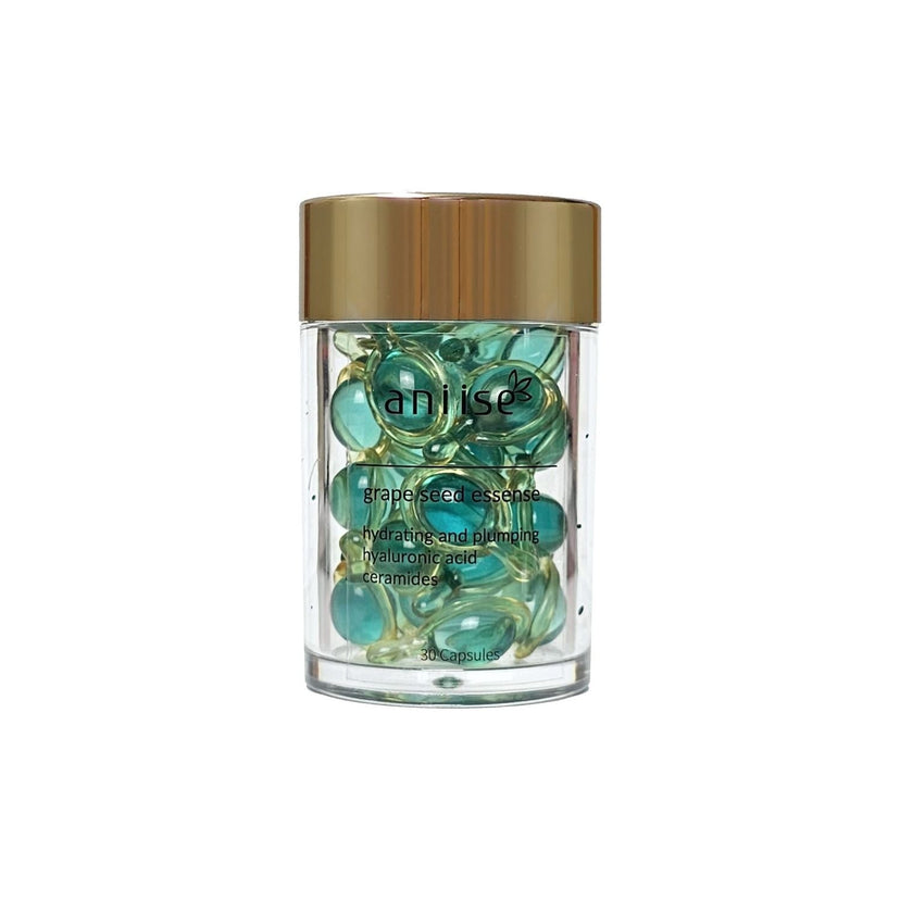 Experience the magic of our Grape Seed Oil Ceramide Capsules, your gateway to achieving a radiant and effortlessly youthful complexion! These capsules are designed for all skin types, packed with potent ingredients like Grape Seed Oil, Hyaluronic Acid, and Ceramides. The precision-sealed capsules preserve the product's natural properties while ensuring maximum potency and effectiveness. Plus, they're eco-friendly, being 100% biodegradable.